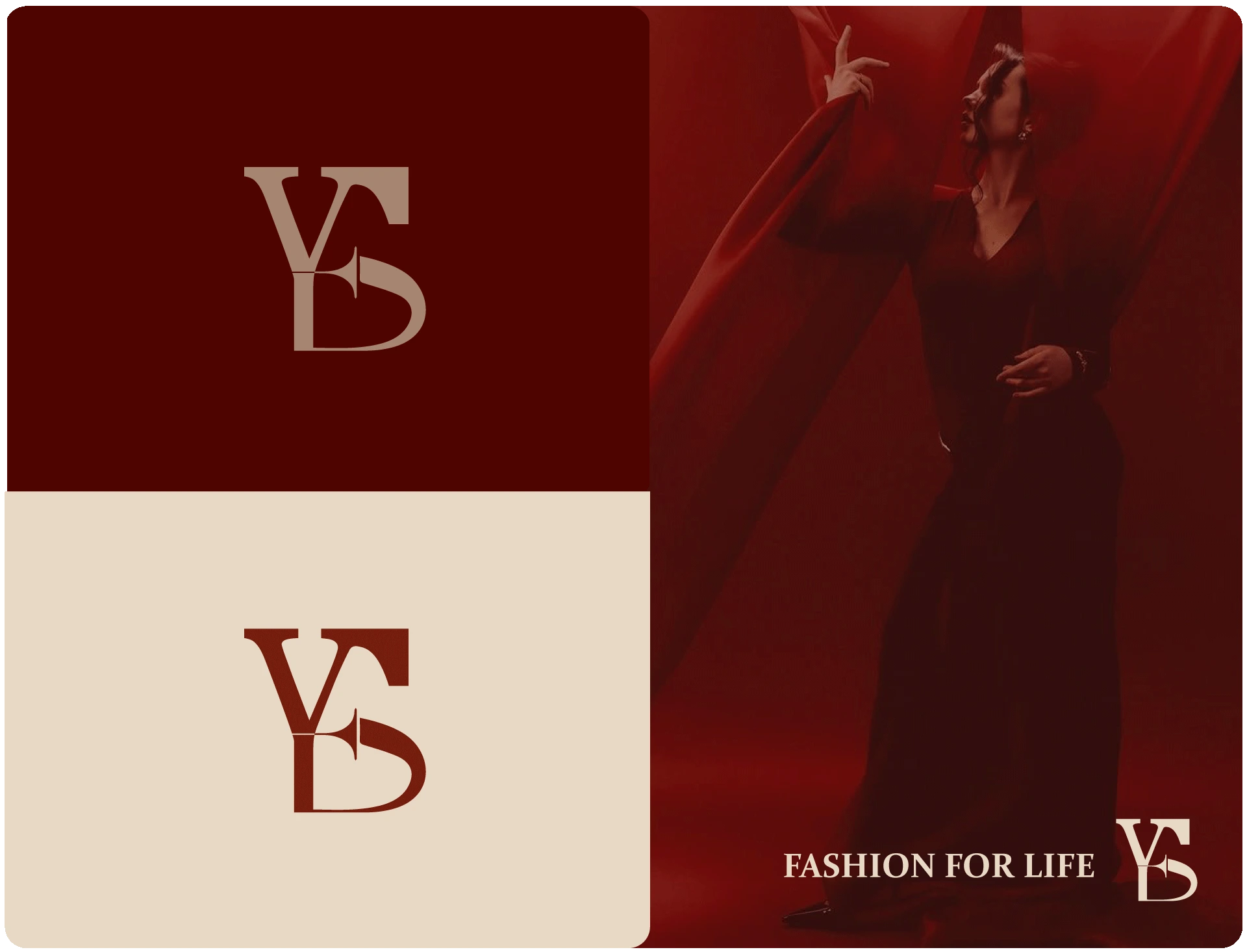 With the tagline “Fashion for Life”, YES isn’t just clothing, it’s an attitude, a statement, and a lifestyle. The maroon and cream monogram identity reflects luxury and sophistication, making YES a brand that resonates with those who inspire and influence the fashion world.